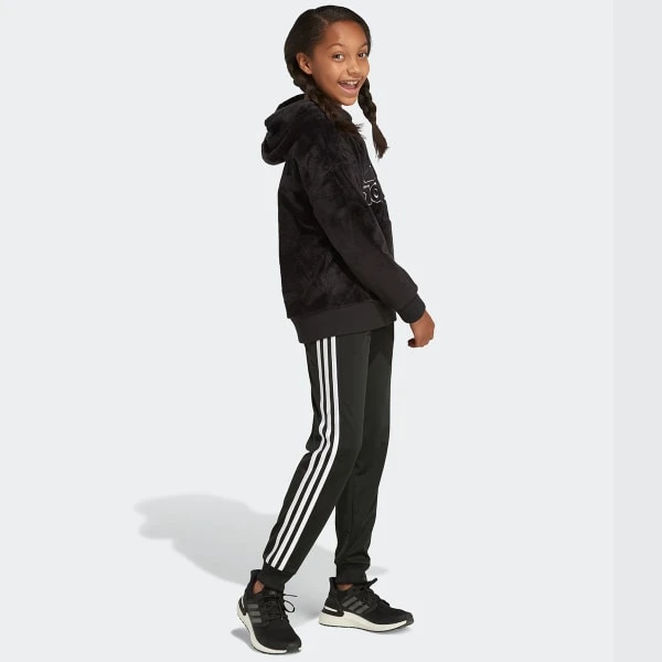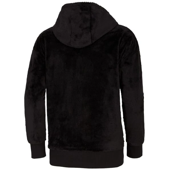 This fleece pullover features a hood and kangaroo pocket. Perfect for the playground or gym class.