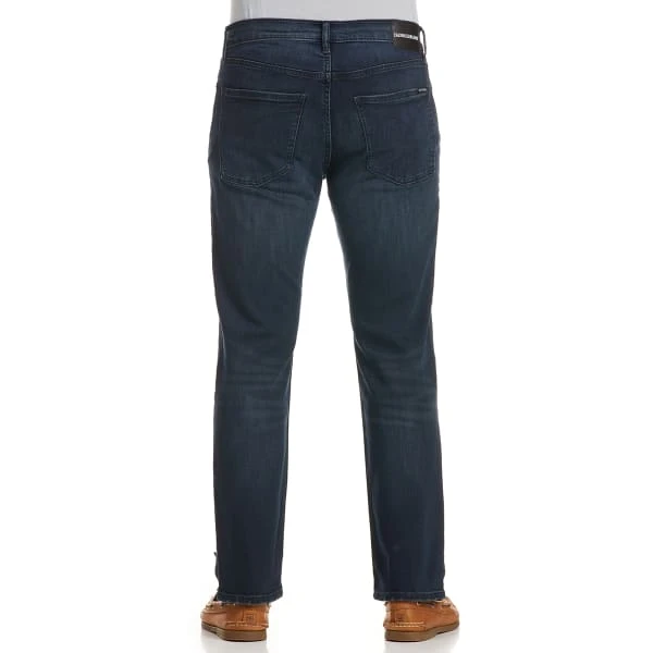 Designed with a straight fit, these Calvin Klein denim jeans feature 5-pocket styling and sit at the waist with straight legs. Updated with metal hardware in a light nickel finish, redrawn back pocket omega stitching and a soft leather logo patch in contrasting colors.