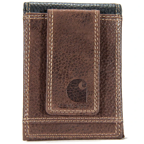 The Carhartt Full Grain Leather Front Pocket Wallet features 2-tone detail with contrast stiching. It’s the perfect wallet for work or play.