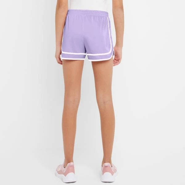 Sporty and fun, these girls’ shorts are ideal for team practices or even game day! The polyester-spandex blend moves with her, while the elastic waistband allows for a custom fit, just for her! Plus, super fun white stitching on the outer and lower hem gives these shorts a cute edge she will love! Comfort is key, which is why we ditched the itch and went for a heat-sealed tag that won’t bug her skin. Small iconic C patch sits on the lower hem, repping some serious Champion pride.