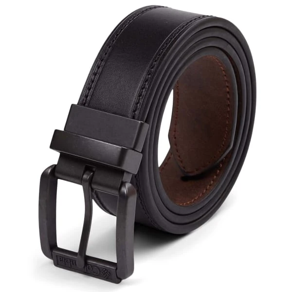 This premium leather belt from Columbia reverses from black to brown, and features a rotating buckle.