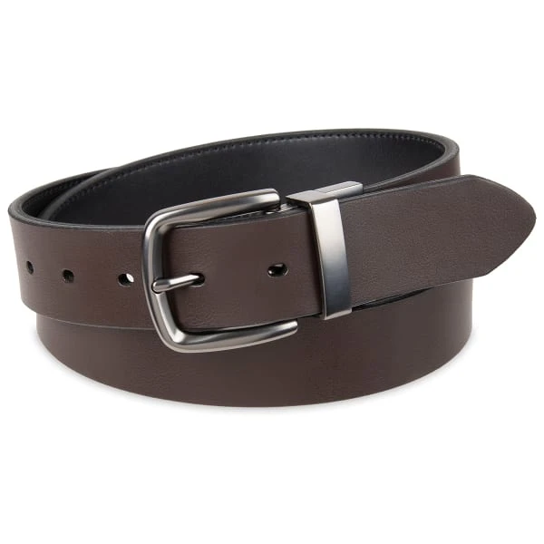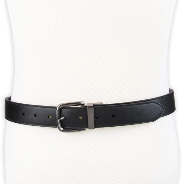 Think versatility. This men’s casual belt features reversible styling and a classic single prong buckle.
