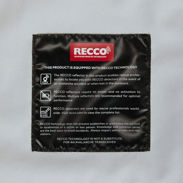 However, the MOST IMPORTANT feature of the Nor’Easter is a true life saver. A built-in Recco Reflector, located on the front brim, serves as a built-in tracker that allows a rescue team to detect your specific location during an emergency situation. It’s ideal for advanced adventurers who thrive on more exciting and riskier pursuits. The Recco needs no battery, so you never have to worry about it dying or needing to be replaced. The jacket is safe to be washed even with the reflector inside.
