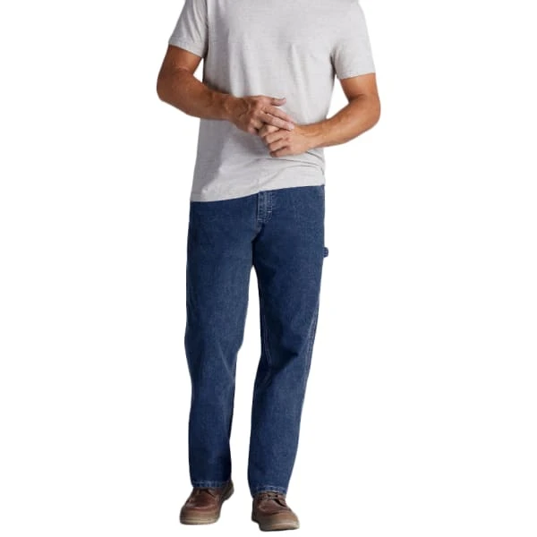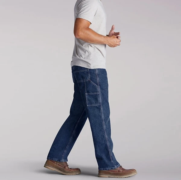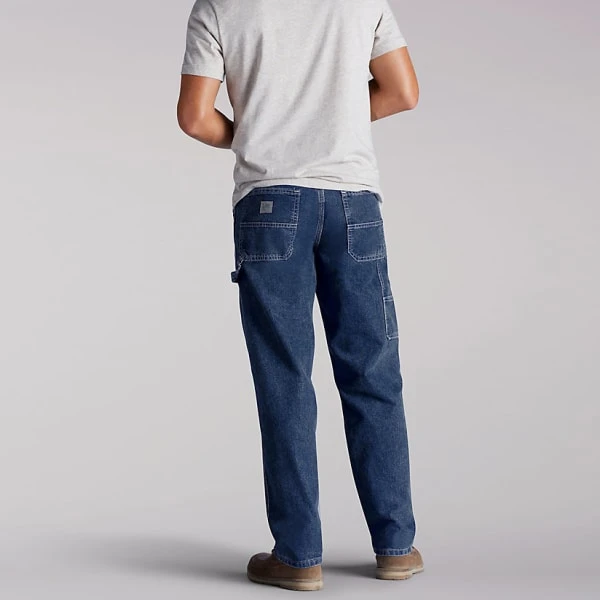 Built with convenience and functionality in mind, the Lee carpenter jeans have a hammer loop and a side utility pocket.