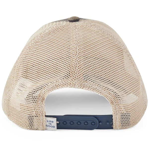 - Six panel unstructured low-mid crown with six rows of stitching on brim and soft mesh on back
