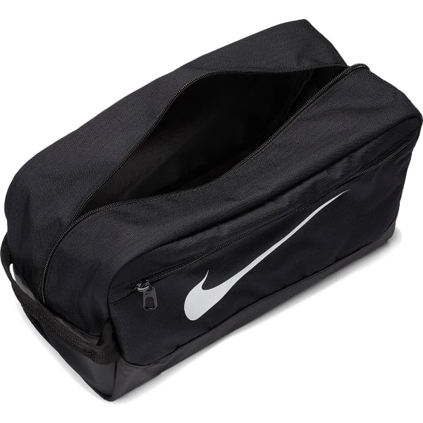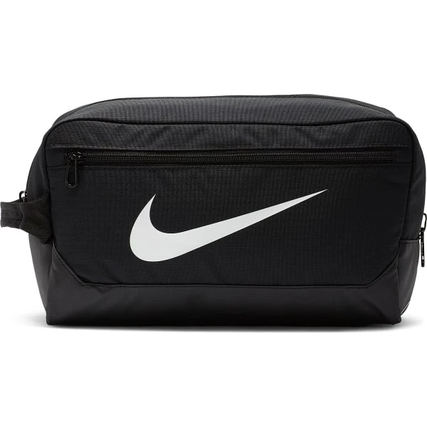 The Nike Brasilia Shoebag is perfect for storing your training shoes, soccer cleats, or work boots. It is has a convenient carry handle with a secure zip fastening on top. It also features a zipped pocket in the front along with a mesh panel to the side for ventilation, and it is finished with the iconic Nike swoosh logo on front.