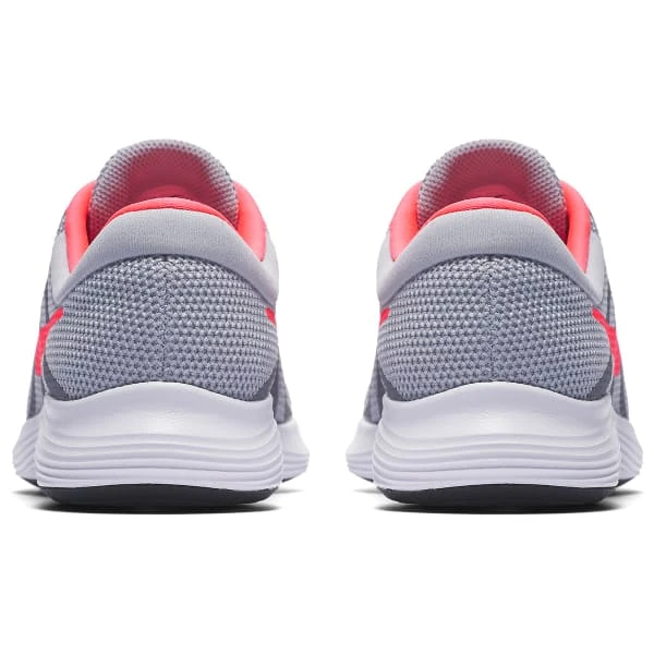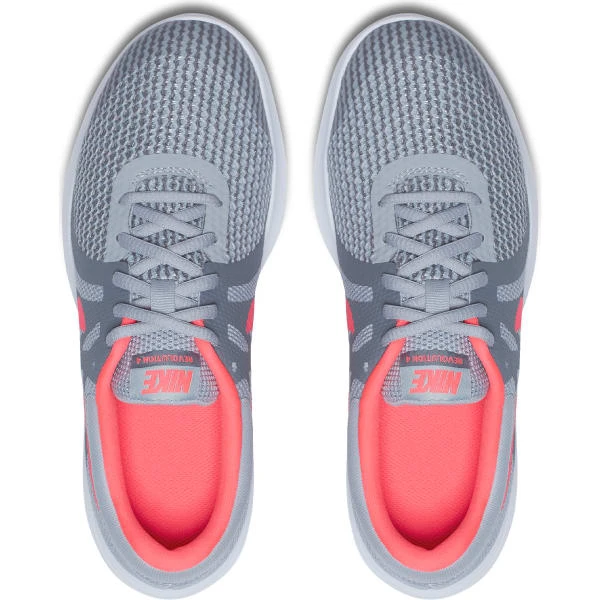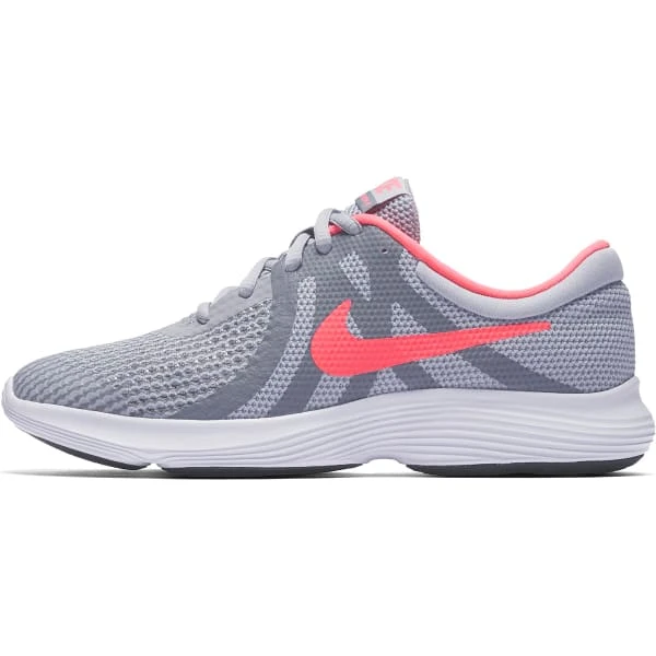 The Nike Revolution 4 GS running shoes offer a breathable mesh upper and a padded collar and tongue for lasting comfort.