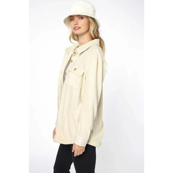 The perfect top for cooler days. This ultra-soft superfleece flannel has a front button closure, solid color wash and fits relaxed on the body.
