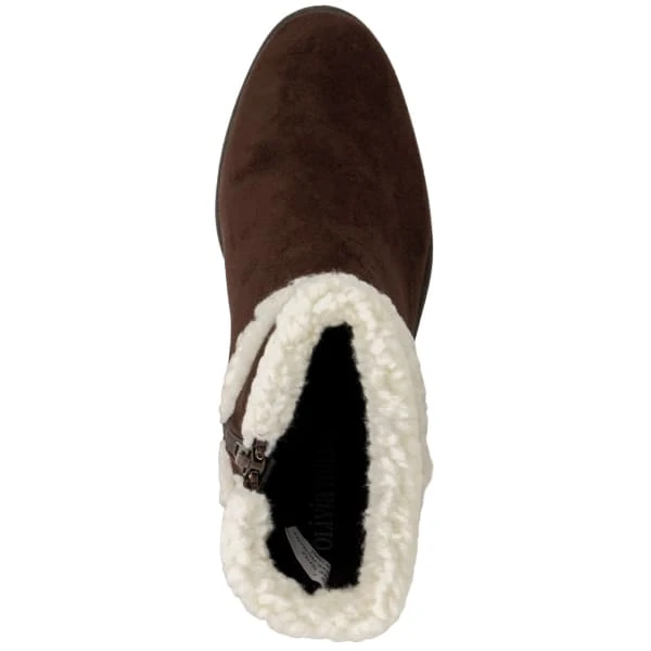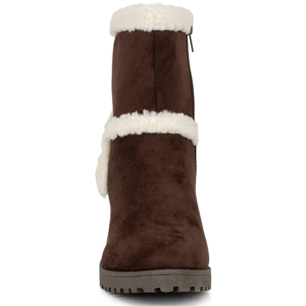 The Olivia Miller faux suede boot is a pull-on style with stacked heel. Perfectly pairs with jeans or slacks.
