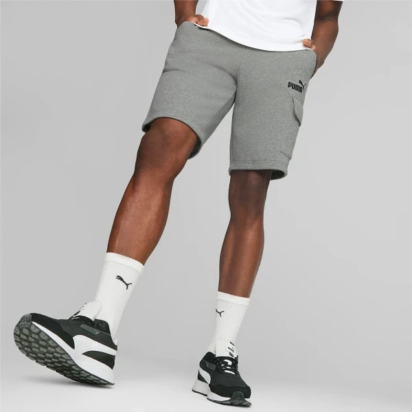 Set out on a workout ruled by comfort and style with the soft French terry fleece feel and subdued logo graphics of these cargo sport shorts by Puma.