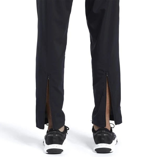 Warm up right. Wear these men’s track pants to and from the gym or through your warm-up routine. The woven polyester build is cut for a slim fit and features a leg gusset for the freedom to stretch, squat and focus on your workout.