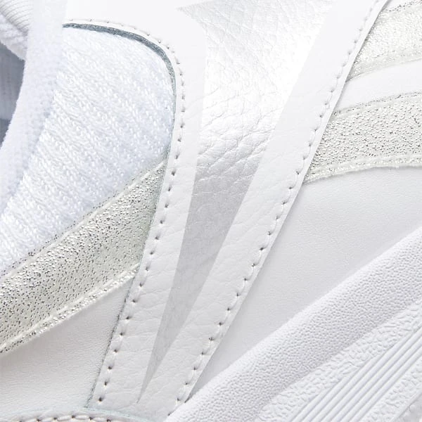 Always bring your A-game. These women’s shoes travel beautifully from the B-ball court to the dance floor. A bold Vector design makes them stand out on the streets. Moulded eyestay accents add style. The leather upper has a ballistic mesh collar for a fierce attitude.