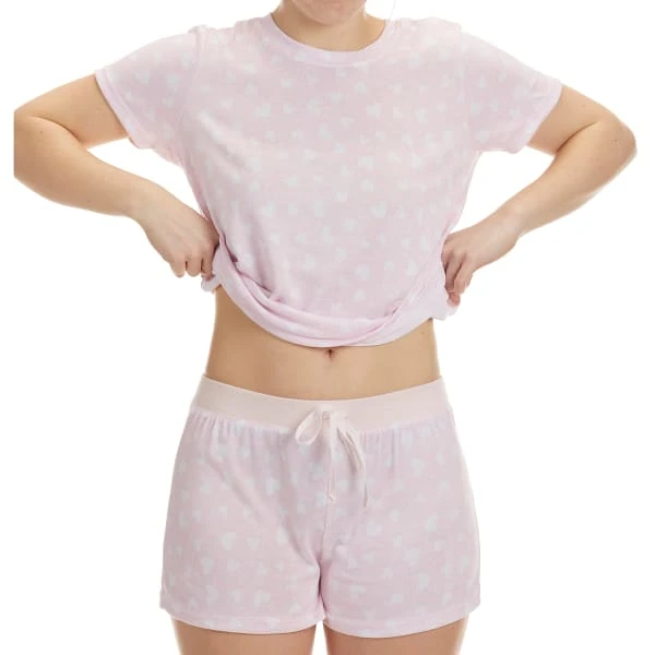 Hit the sheets in comfortable style in the Hacci Short/top pajama set from Rene Rofe.