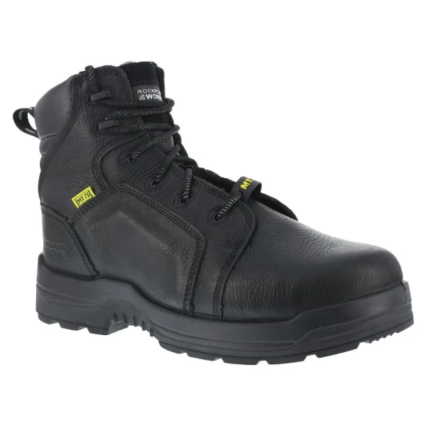 Get comprehensive protection to handle and perform on the job. Made out of full-grain leather, these 6 in. work boots have all aspects covered, from an internal metatarsal guard to shock absorption, improved traction, and slip resistance. Available in wider sizes.
