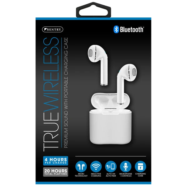 These True Wireless Bluetooth Earbuds from Sentry come with a in a portable charging case. They feature a completely wireless design; No need to ever struggle with annoying cord tangles again! Lightweight and packable, they are perfect for travel or daily use.