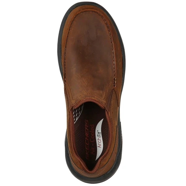 Your feet will thank you for the supportive comfort of Skechers Arch Fit Motley – Hust. Smooth oiled matte-finish leather and smooth synthetic upper in a slip-on casual moc toe loafer with supportive Arch Fit and Air-Cooled Memory Foam insole.