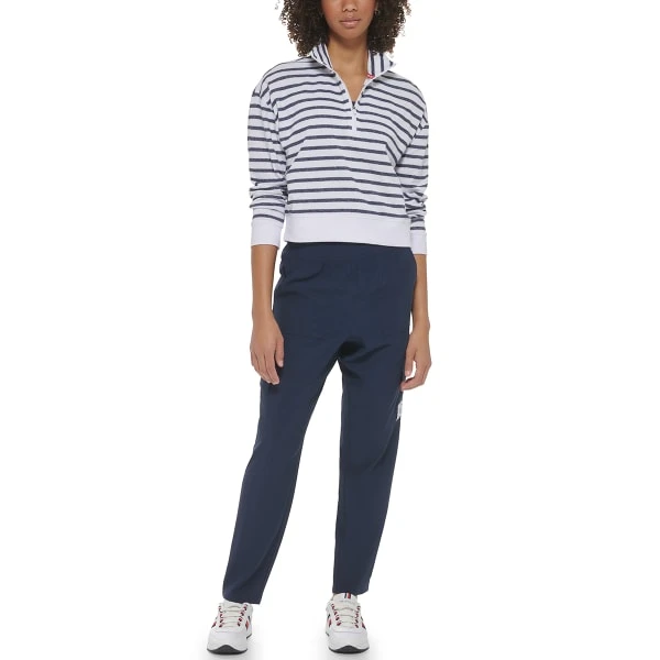 The French Terry 1/2-Zip Pullover from Tommy Hilfiger nicely pairs with jeans, shorts or a casual skirt for a comfy and put-together look.