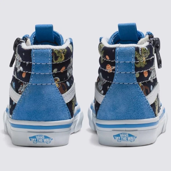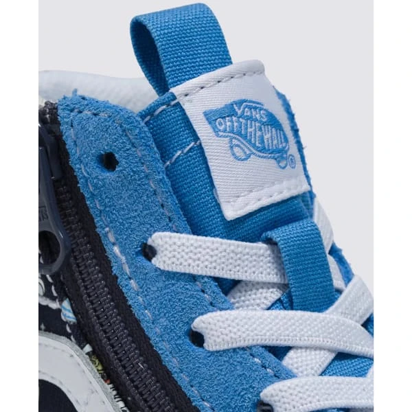 The Kids’ Sk8-Hi Zip shoe combines the legendary Vans lace-up high top with a zipper entry at the heel, providing increased access and versatility.